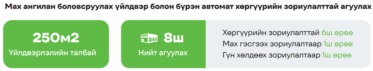 Мах ангилан боловсруулах үйлдвэр болон бүрэн автомат хөргүүрийн зориулалттай агуулах